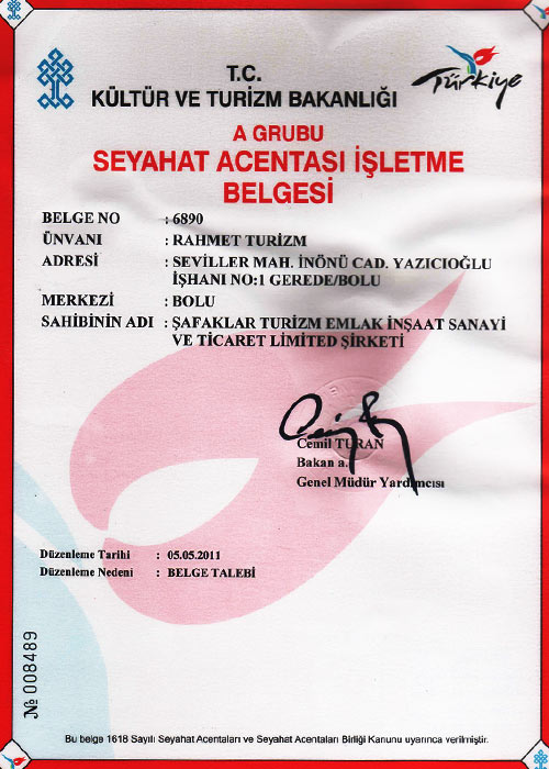 Dürüstlük üzerine kurulu şirket politikamızdan ödün vermeden, toplumsal sorumluluk bilinciyle hareket eden, eleştiriye açık, sunduğu hizmetle tercih edilen, güvenilir bir turizm firması olmak.